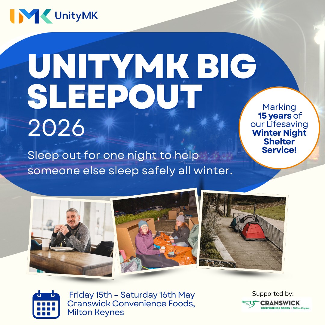 UnityMK write: The UnityMK Big Sleepout 2026 is here! Could you give up your bed for one night to help someone else sleep safely all winter? Join UnityMK for our Big Sleepout 2026, kindly hosted by our supporters Cranswick Convenience…